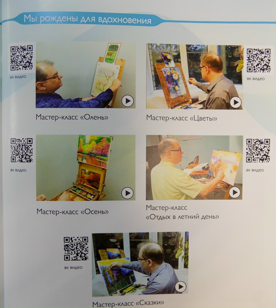 Их приятно подержать в руках и воочию увидеть результаты многодневной работы. Стараемся идти в ногу со временем и, помимо замечательных рисунков участников, в брошюре разместили QR-коды ссылок на видео-уроки, созданные в рамках проекта. Ребята смогут при необходимости пересматривать уроки художника Валерия Елисеева